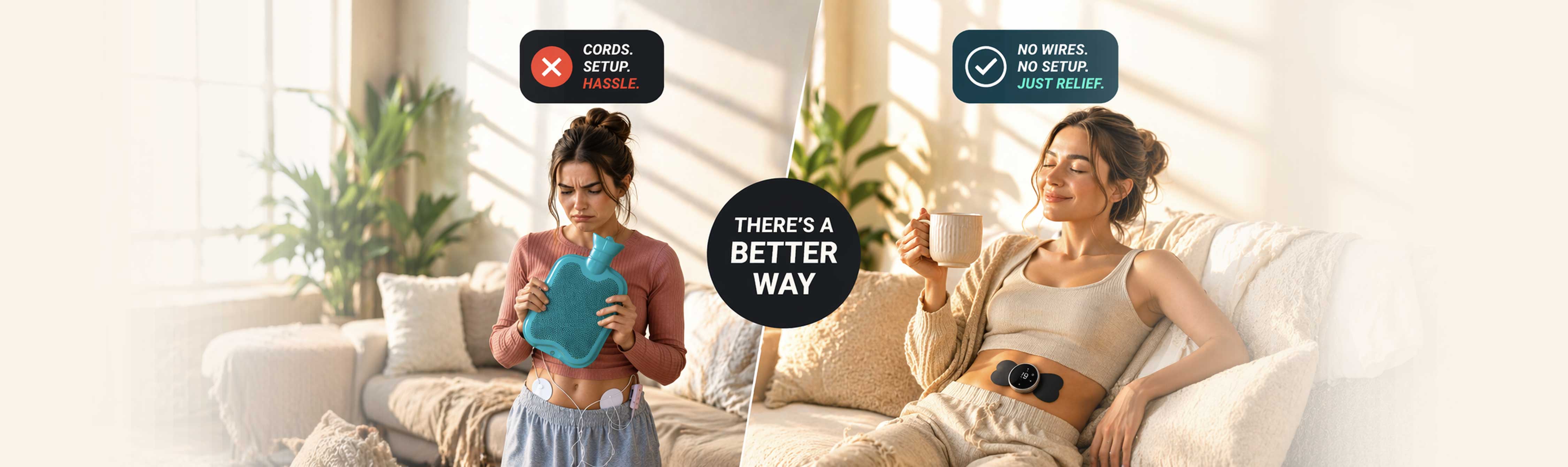 Mira Pro is fully wireless — no hot water bottles. No cables. No setup. No interruptions.